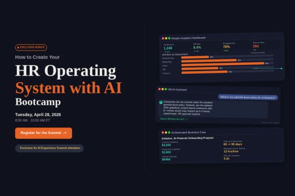 On April 28, we are hosting an exclusive two-hour bootcamp for AI Experience Summit attendees: How to Create Your HR Operating System with AI.